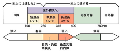 近年、オゾン層の減少により、強いエネルギーを持ったUV-B(315〜280nm)と呼ばれる