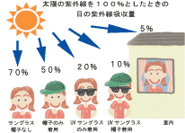 UVカットのサングラスorメガネをかけることで目に入ってくる紫外線を約80%カットすることができます。